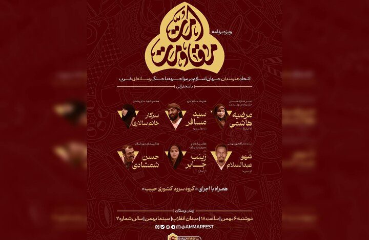 پایگاه خبری تحلیلی «عصر سینما»؛ به نقل از روابط عمومی جشنواره، دوشنبه ۶ بهمن همایش «امت مقاومت» ویژهبرنامه بینالملل جشنواره عمار با موضوع «اتحاد هنرمندان جهان اسلام در مواجهه با جنگ…