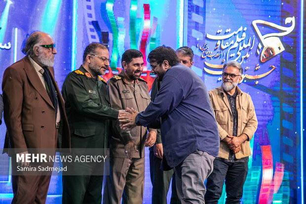 ابتدا جلال غفاری قدیر دبیر جشنواره فیلم مقاومت روی صحنه آمد و گفت: تلاش شد از دوره هفدهم جشنواره فیلم مقاومت بسط فرمی از محتوای مقاومت را در دستور کار قرار دهیم. در واقع امتداد محتوا در فرم یک ضرورت برای سینمای مقاومت است. در این راستا کارکردهایی برای جشنواره درنظر گرفته شد. فرمایش مقام معظم رهبری این بود که گفتمان مقاومت ترویج داده شود و در این راستا سینما ابزاری بود تا این طنین را به پهنای هستی در عالم پخش کند.