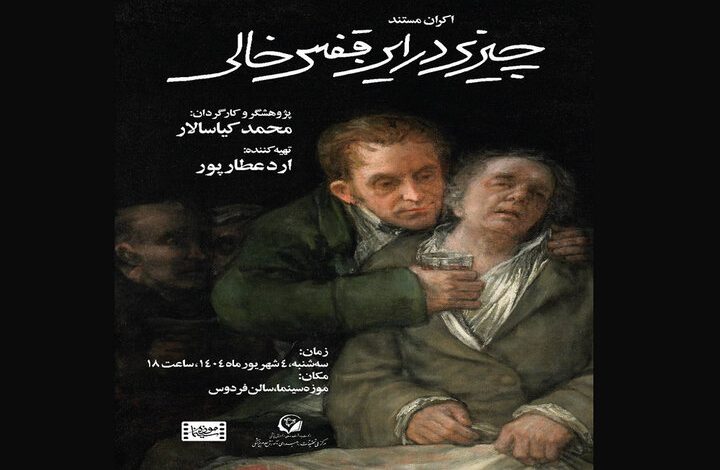 پایگاه خبری تحلیلی «عصر سینما»؛ به نقل از پایگاه خبری موزه سینمای ایران، مستند «چیزی در این قفس خالی» به تهیه‌کنندگی اُرُد عطارپور و کارگردانی محمد کیاسالار، روز سه‎ شنبه چهارم شهریور در سالن فردوس موزه سینما اکران می‌شود.