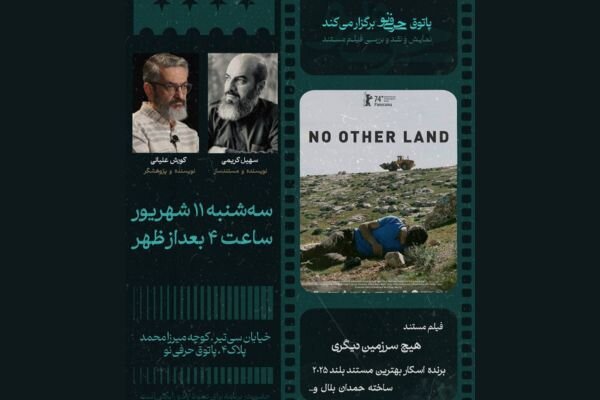 مستند «هیچ سرزمین دیگری» ۱۱ شهریور در پاتوق حرفینو اکران، نقد و بررسی میشود.