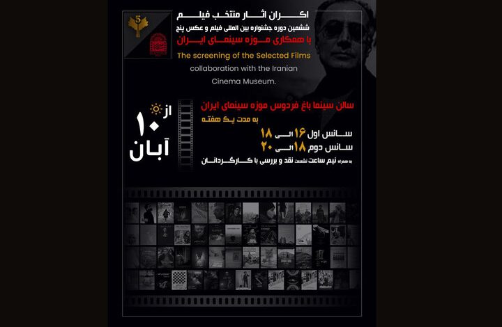 پایگاه خبری تحلیلی «عصر سینما»؛ به نقل از روابط عمومی جشنواره، فیلم‌های منتخب ششمین جشنواره بین‌المللی فیلم و عکس «پنج» از کشورهایی همچون ژاپن، ترکیه، رومانی، روسیه، چین و … قرار است از ۱۰ آبان به مدت یک هفته در ۲ سانس از ساعت ۱۶ الی ۱۸ و ۱۸ الی ۲۰ در سالن فردوس موزه سینما اکران شوند.